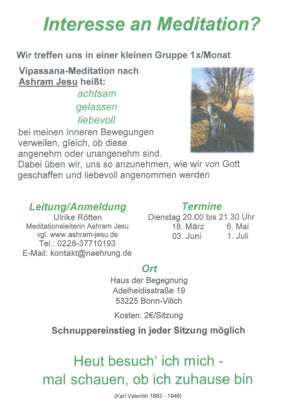 Vortreffen: Freitag, 2. Januar 2026, 11.00 Uhr, Pfarrheim Vilich-Müldorf